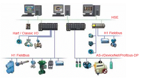 H2現(xiàn)場總線(HSE)描述了在100MB/秒以太網(wǎng)上工作的一種現(xiàn)場總線網(wǎng)絡,通常連接I/O子系統(tǒng)、鏈接設備、交換器、主機設備和現(xiàn)場設備等,可滿足高速工廠自動化應用的要求。