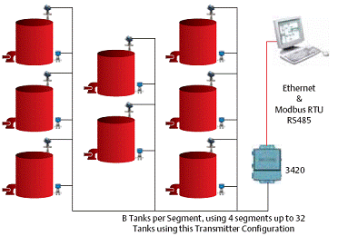 3420現(xiàn)場總線接口模塊也適合一些小規(guī)模FF應用,比如罐區(qū)監(jiān)控系統(tǒng)等: