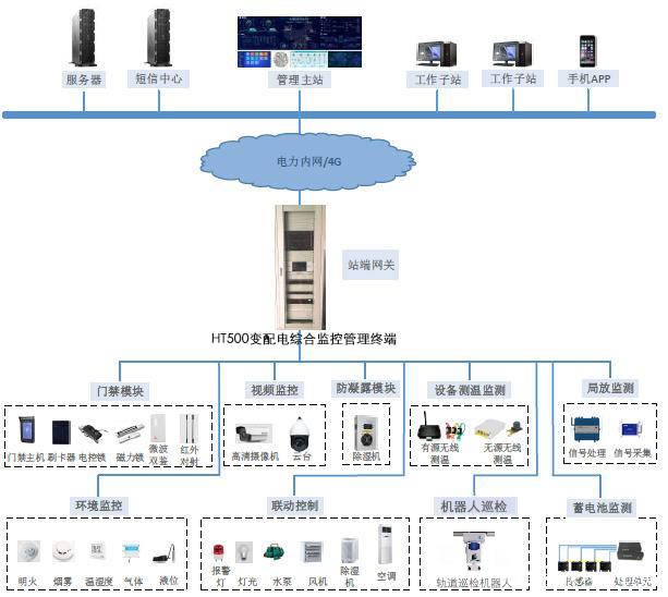 | 配電房不管是在生活小區(qū),生產(chǎn)工業(yè)園區(qū)中都是重要的基礎(chǔ)設(shè)施,配電房內(nèi)整個(gè)園區(qū)內(nèi)電力系統(tǒng)重要的中樞位置。根據(jù)某個(gè)一線城市的統(tǒng)計(jì),僅2016年一年內(nèi),就有33起配電站房因環(huán)境因素而跳閘,平均斷電時(shí)間約為3小時(shí)。站房環(huán)境治理十分重要。配電室環(huán)境綜合監(jiān)控系統(tǒng)的設(shè)計(jì)目的,就是為了保證配站設(shè)備和環(huán)境的安全運(yùn)行,使其能夠正常工作。 配電室環(huán)境綜合監(jiān)控系統(tǒng)改造設(shè)計(jì)主要包括以下幾個(gè)方面: 1.傳感器布局優(yōu)化:針對配電室的環(huán)境特點(diǎn),對傳感器的布局進(jìn)行優(yōu)化,確保各項(xiàng)參數(shù)的準(zhǔn)確監(jiān)測和數(shù)據(jù)采集,包括溫濕度、氣體、SF6等多個(gè)方面。 2.監(jiān)控設(shè)備升級:通過升級監(jiān)控設(shè)備,實(shí)現(xiàn)對配電室環(huán)境參數(shù)的實(shí)時(shí)監(jiān)測和數(shù)據(jù)處理,支持實(shí)時(shí)預(yù)警和故障診斷,提高配電室的運(yùn)行效率和安全性。 3.數(shù)據(jù)存儲與分析:建立配電室環(huán)境參數(shù)的數(shù)據(jù)庫,存儲歷史數(shù)據(jù),并進(jìn)行數(shù)據(jù)分析和處理,找出環(huán)境異常的規(guī)律和原因,提高故障診斷和預(yù)警的準(zhǔn)確性和有效性。 4.報(bào)警系統(tǒng)優(yōu)化:針對配電室的實(shí)際情況,對報(bào)警系統(tǒng)進(jìn)行優(yōu)化,包括報(bào)警方式、報(bào)警級別、報(bào)警響應(yīng)時(shí)間等,確保在發(fā)生異常時(shí)能夠及時(shí)響應(yīng)和處理。 5.可視化界面設(shè)計(jì):通過設(shè)計(jì)可視化界面,將配電室環(huán)境參數(shù)的監(jiān)測結(jié)果直觀地展示出來,方便管理人員進(jìn)行數(shù)據(jù)分析和決策。 6.智能化控制:通過引入智能化控制技術(shù),實(shí)現(xiàn)對配電室環(huán)境的自動化控制,包括溫濕度控制、氣體監(jiān)測和處理等,提高運(yùn)行效率和安全性。 系統(tǒng)設(shè)計(jì)內(nèi)容配電室環(huán)境綜合監(jiān)控系統(tǒng)采用分層結(jié)構(gòu)、模塊化設(shè)計(jì),網(wǎng)絡(luò)結(jié)構(gòu)簡潔清晰,便于安裝、維護(hù)和擴(kuò)充。主站層安裝HT500輔助監(jiān)控主機(jī),網(wǎng)絡(luò)層通過分布式的網(wǎng)關(guān)可根據(jù)現(xiàn)場情況靈活地與局域網(wǎng)網(wǎng)絡(luò)相結(jié)合,在長距離通信時(shí)可借助光纖進(jìn)行組網(wǎng)。通過現(xiàn)場總線和以太網(wǎng)技術(shù)相結(jié)合,實(shí)現(xiàn)現(xiàn)場設(shè)備數(shù)據(jù)的高速交換,并快速響應(yīng)各種遠(yuǎn)程控制命令。同一網(wǎng)段中的客戶機(jī)可通過瀏覽器訪問配電監(jiān)控服務(wù)器,同樣實(shí)現(xiàn)遠(yuǎn)程監(jiān)控功能。  配電室環(huán)境綜合監(jiān)控系統(tǒng)